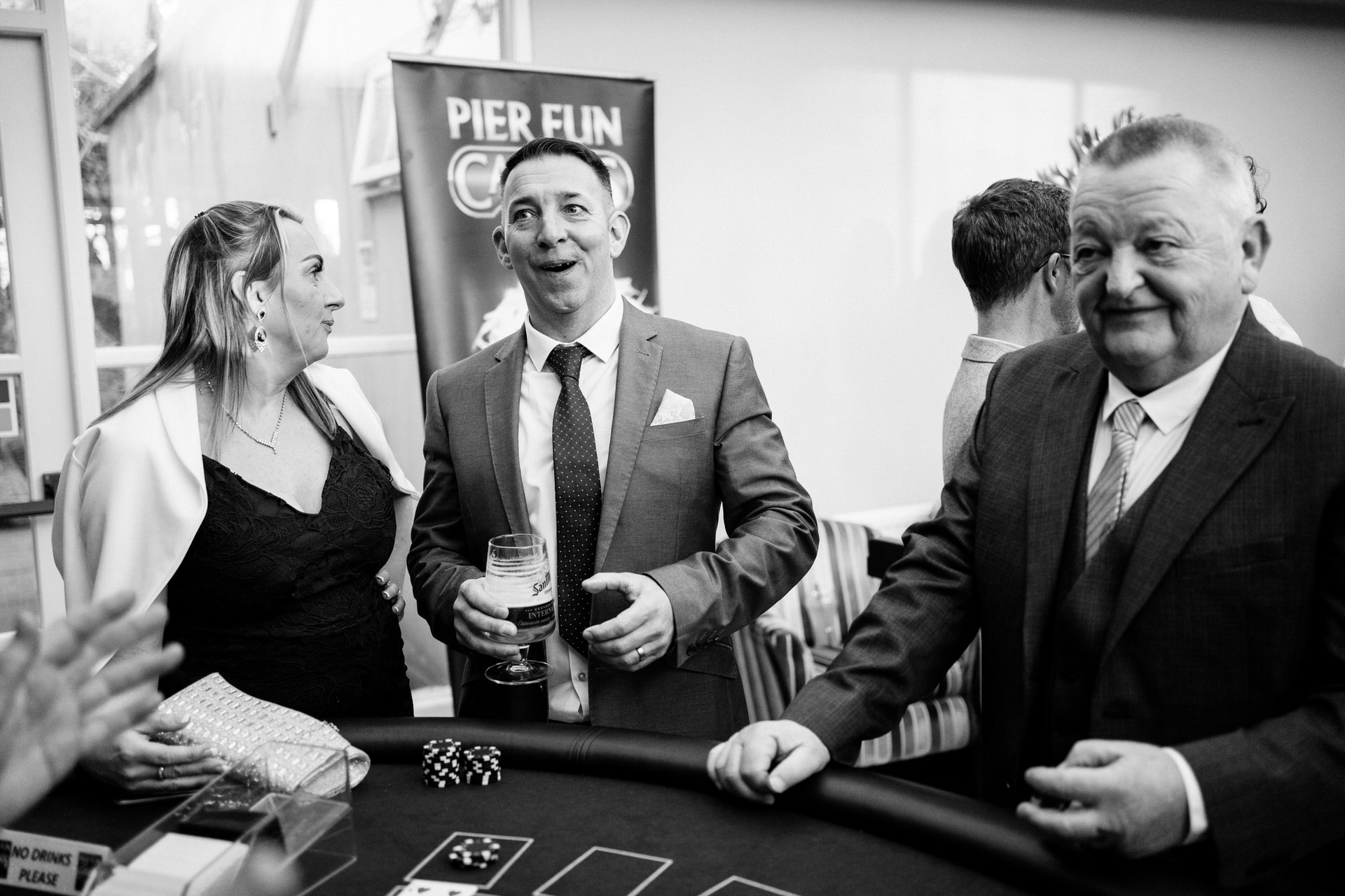 The ceremony was really lovely, with tears in their guests eyes and again lots of laughs too. Once they were married we took photos on the terrace with the backdrop of the golf course and thankfully we got some glorious sunshine too! After some great speeches and the most delicious meal, they enjoyed a couple of hours chilling out and playing at the Casino tables, which Bernedette had booked as a surprise for everyone. They loved it!