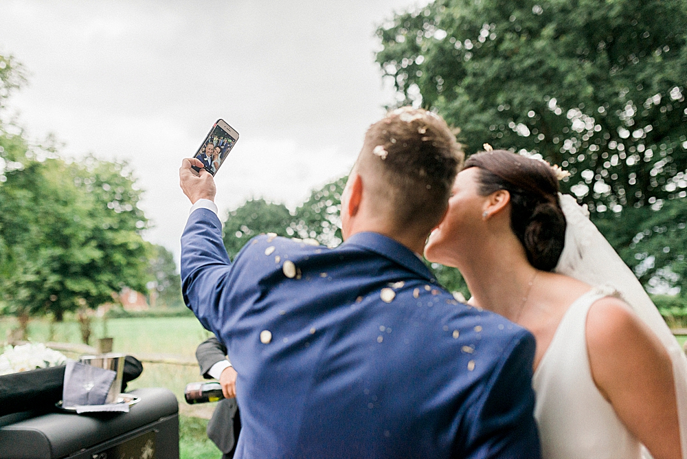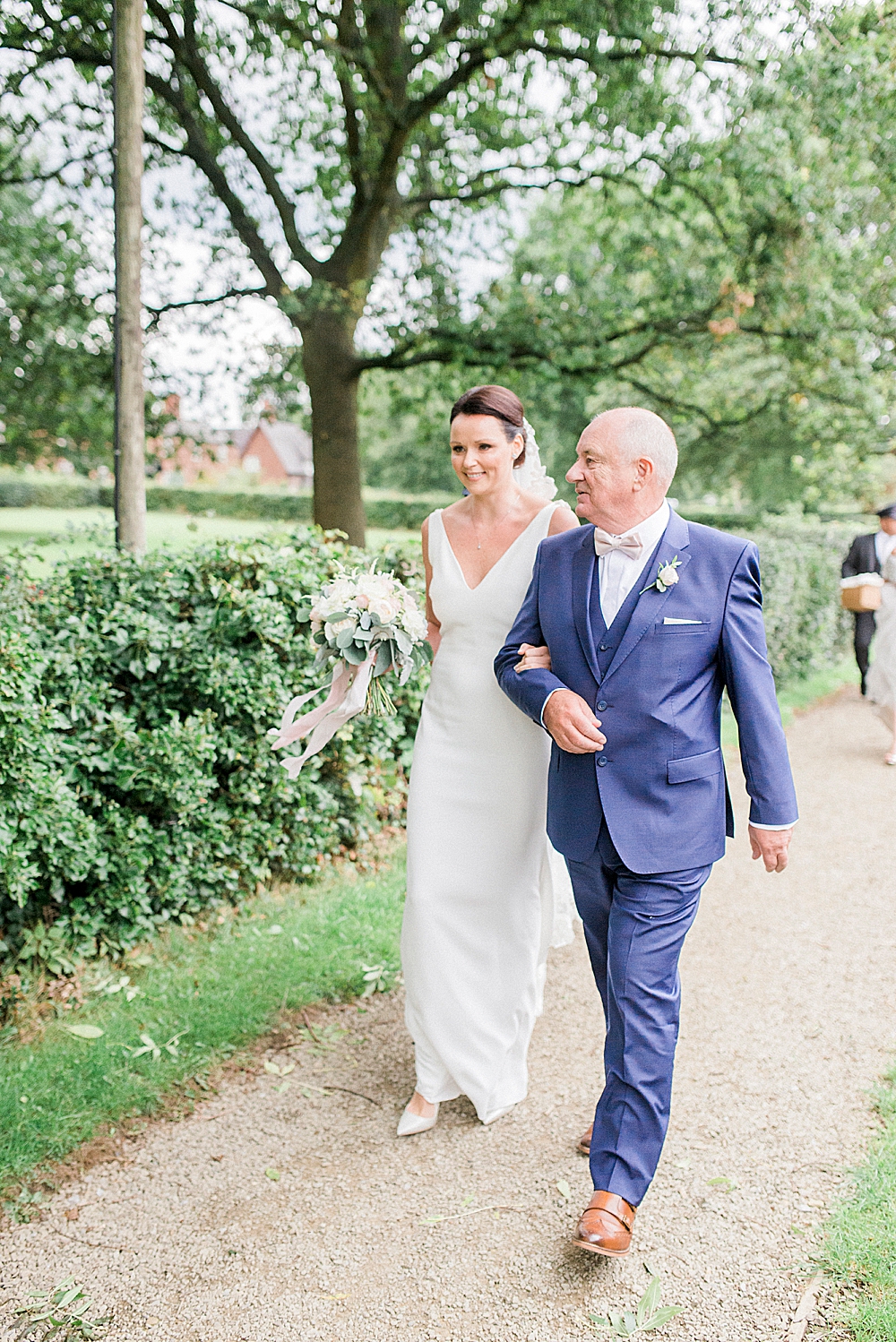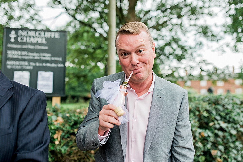 Sally and her bridesmaids, mum and little girls got ready at Didbury House Hotel, with Steven and the boys at 11 Didsbury Park just down the path. They had a vintage, double-decker bus which transported everyone to Norcliffe Chapel in Styal, where they had their ceremony, before bringing everyone back to Didsbury again where they had a drinks reception and photos outside the hotel front.