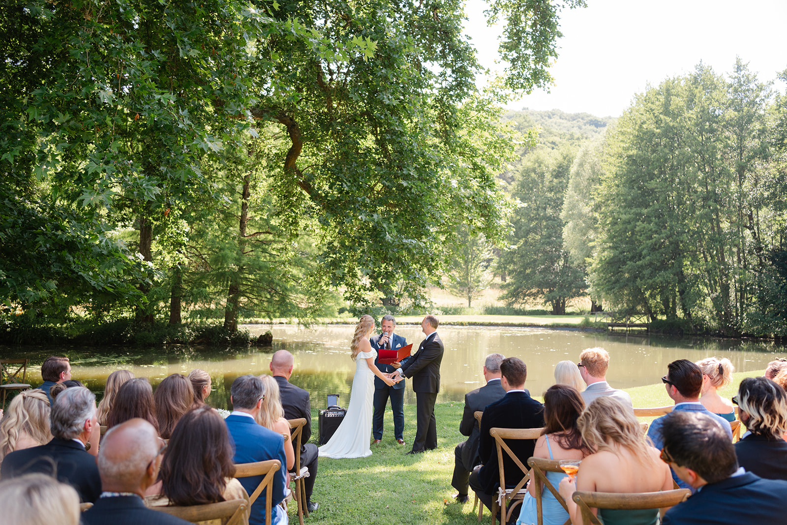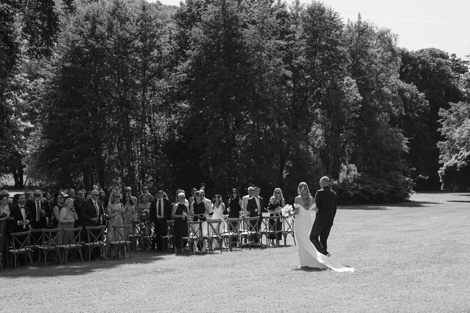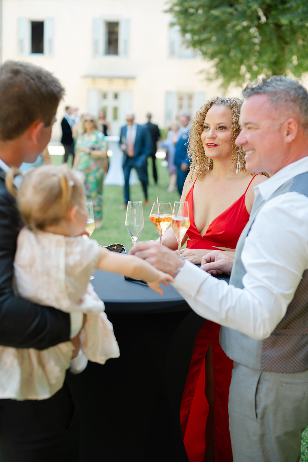 Jordan and her girls spent the morning in the chateau itself, with Sam and the guests gathering outside in the courtyard for drinks, before making their way down onto the lawn for the ceremony. After spending the afternoon relaxing and chatting in the shade of the trees they then enjoyed a typically French dinner, with Beef Borguignon and exquisite wines.