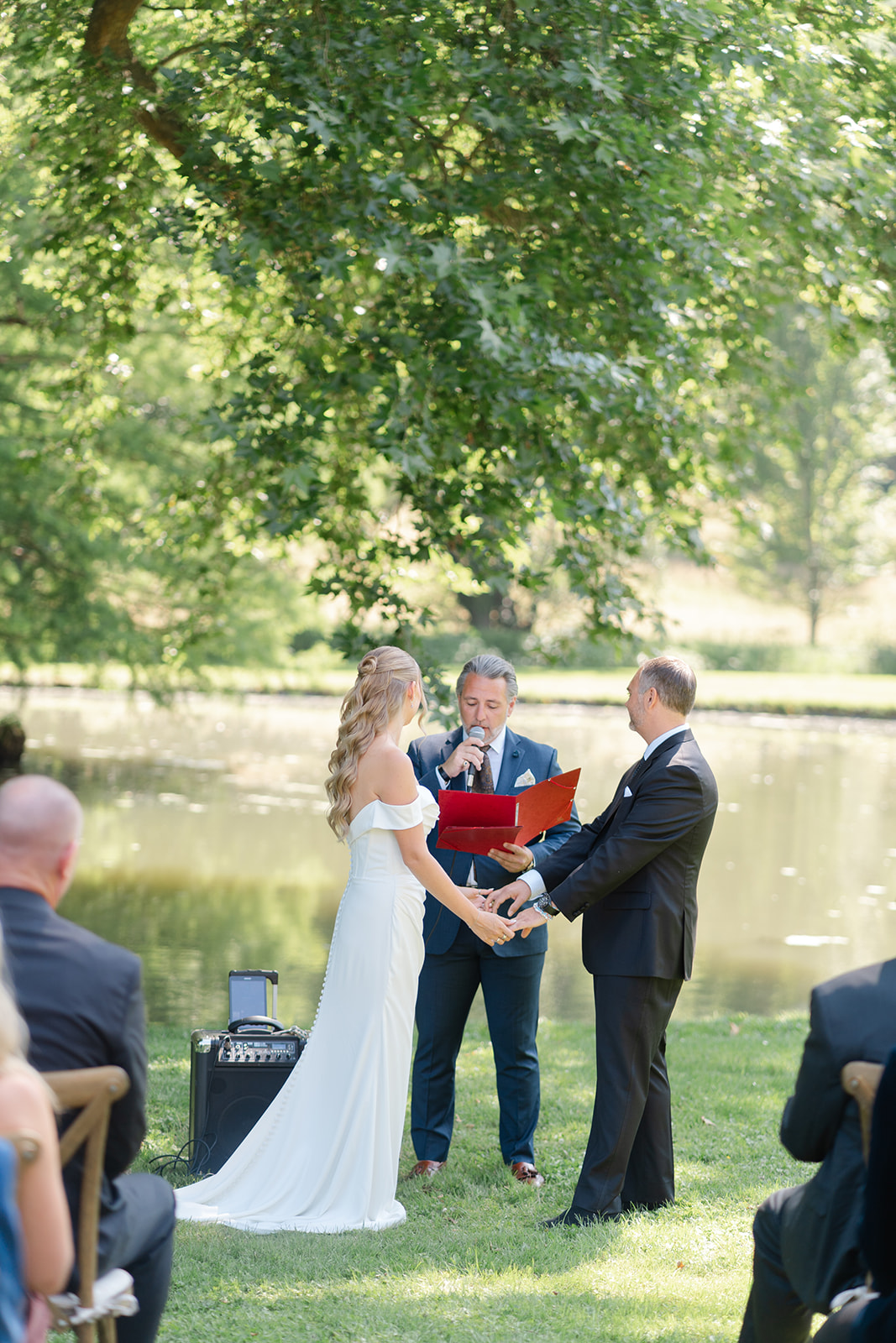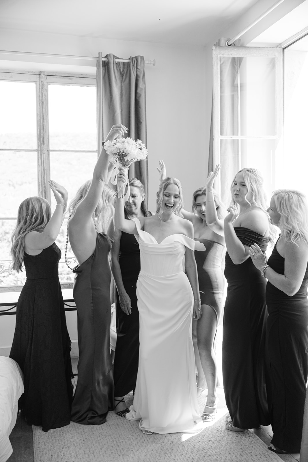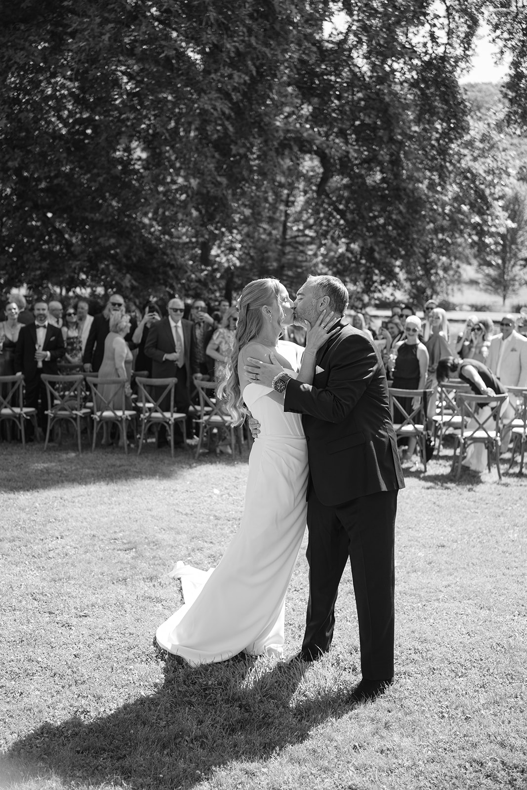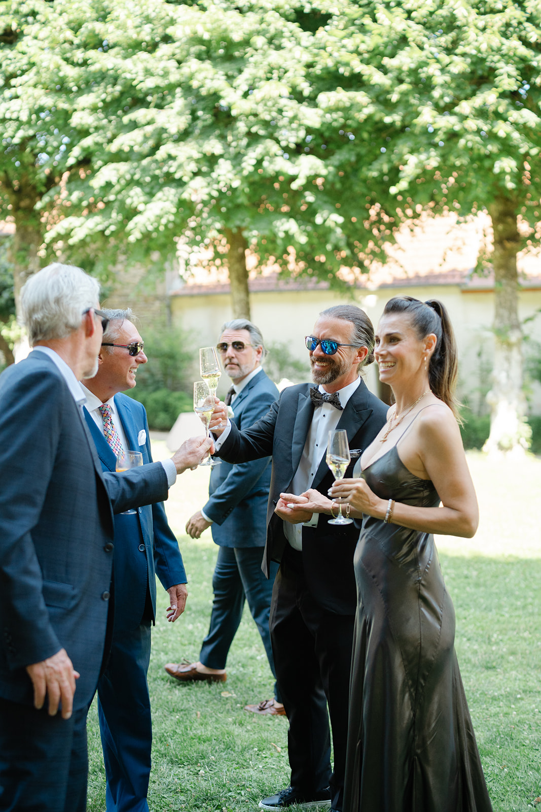 Jordan and her girls spent the morning in the chateau itself, with Sam and the guests gathering outside in the courtyard for drinks, before making their way down onto the lawn for the ceremony. After spending the afternoon relaxing and chatting in the shade of the trees they then enjoyed a typically French dinner, with Beef Borguignon and exquisite wines.