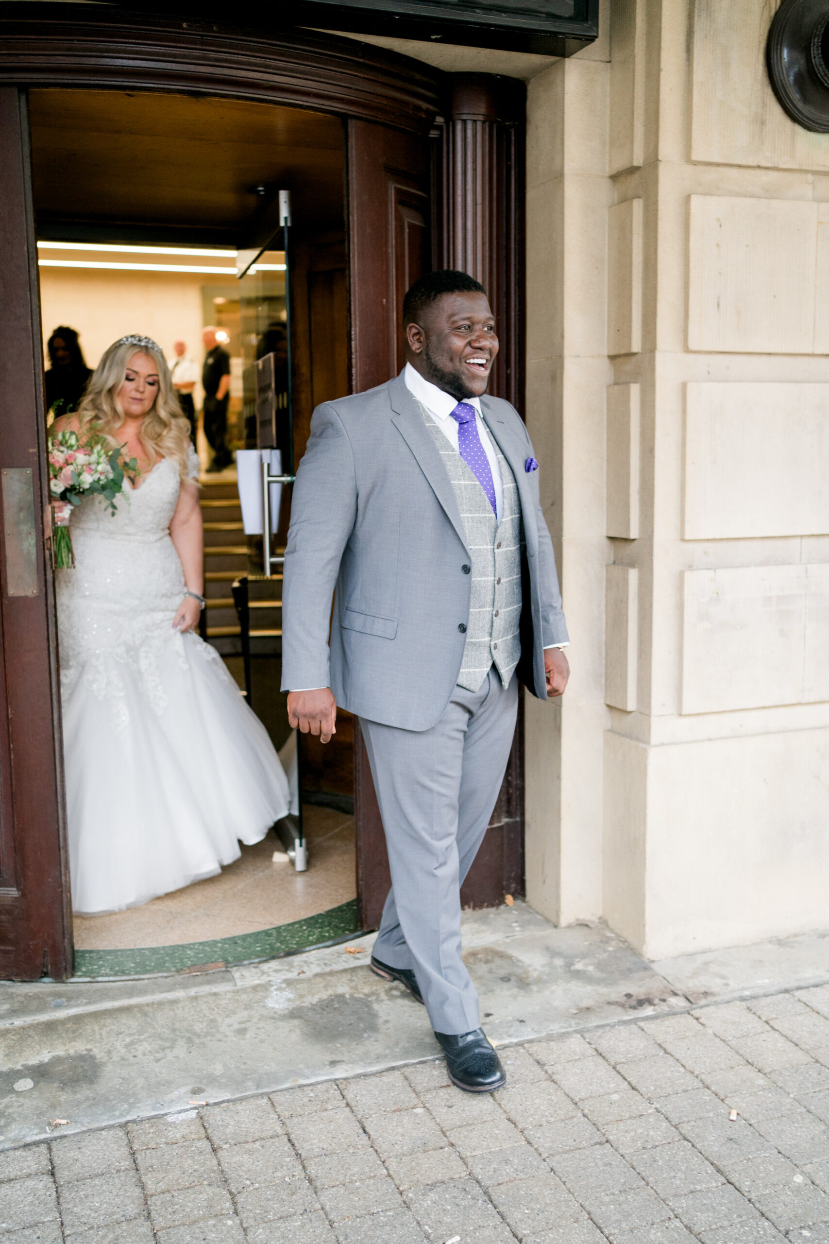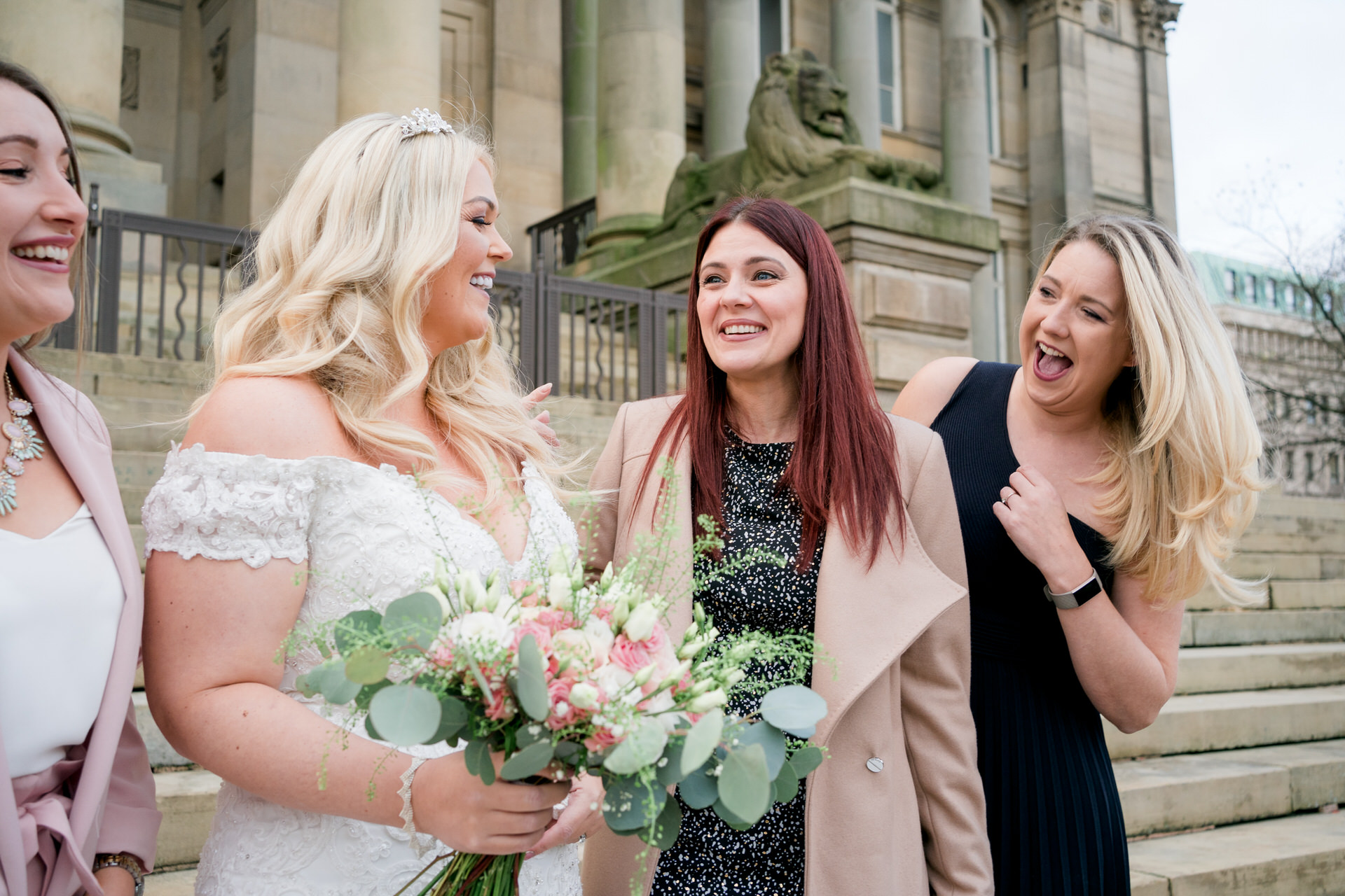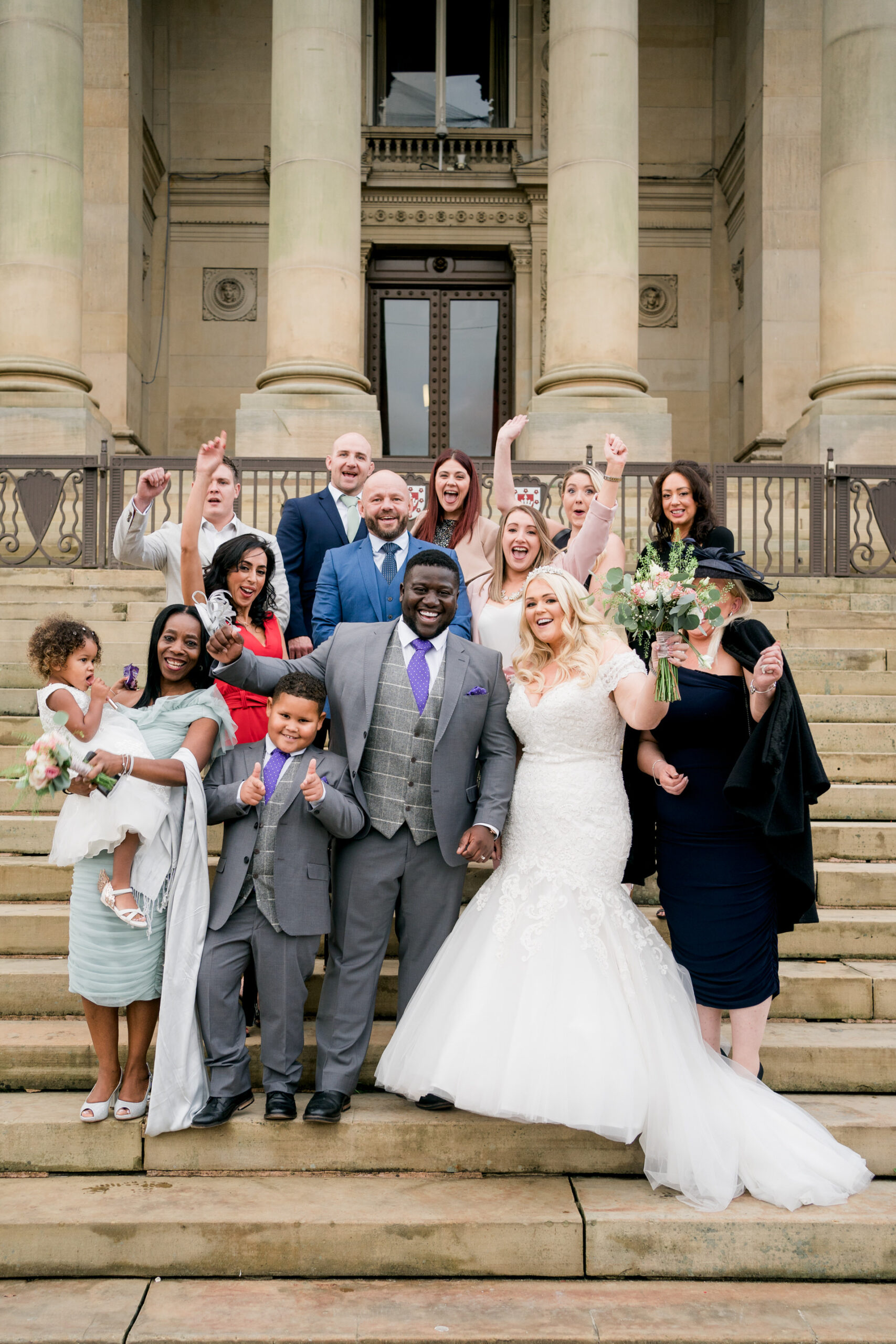 Leyton and Katie did things a little differently for their wedding! Their ceremony was at the town hall in Bolton, and I met them there last week to photograph it along with a very select few friends and close family. We took pictures on the steps of the pretty impressive building and in the square near the remembrance day memorials. They then spent a couple of days midweek in London, just the two of them, like a romantic little mini-moon 🙂 Then, On Saturday, they headed into Manchester and got glammed up and party-ready for their big reception at The Castlefield Rooms.