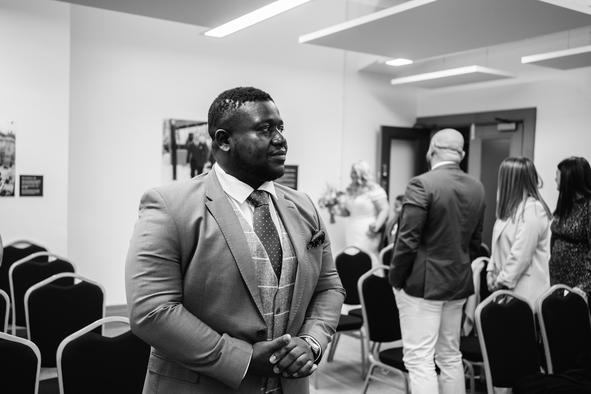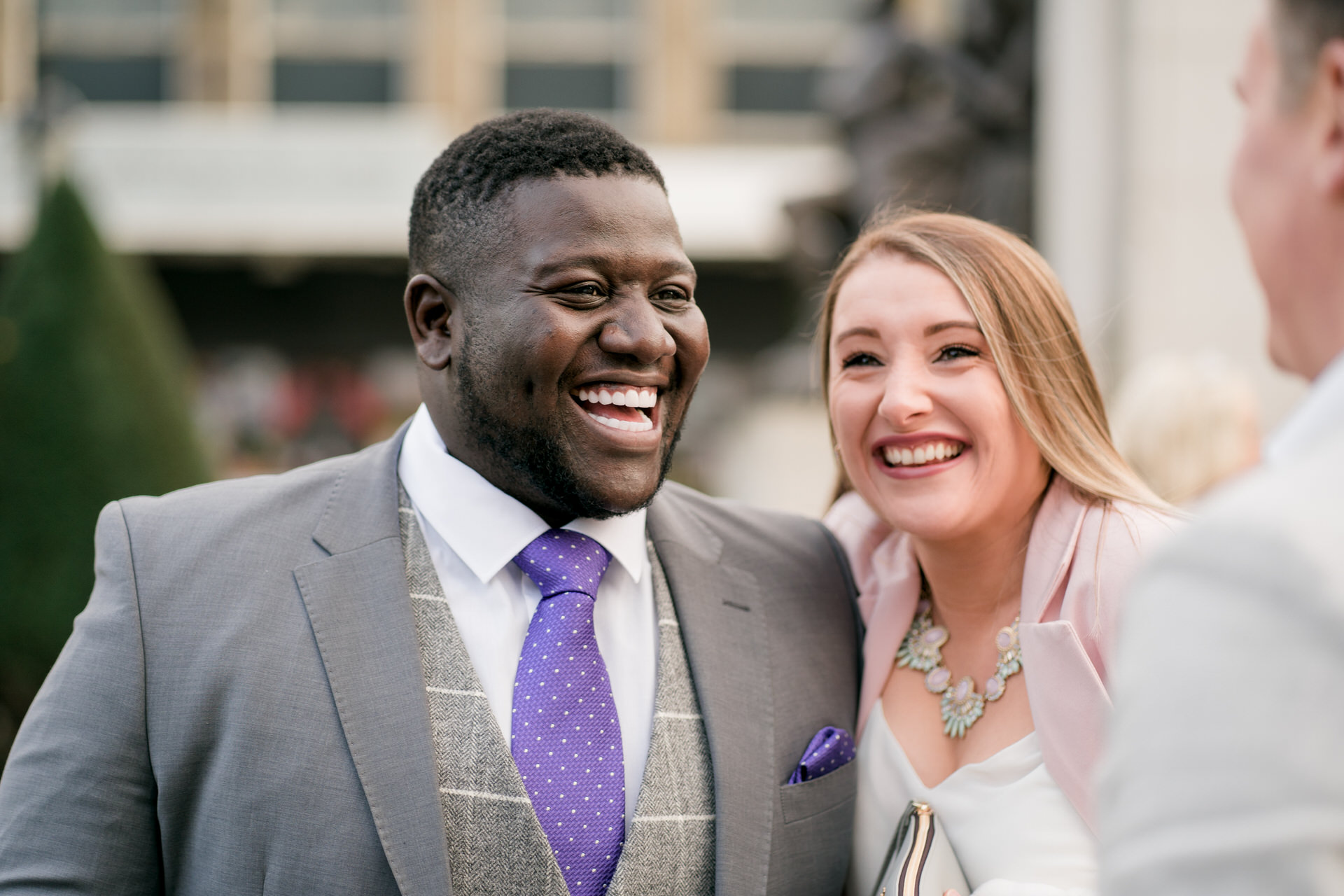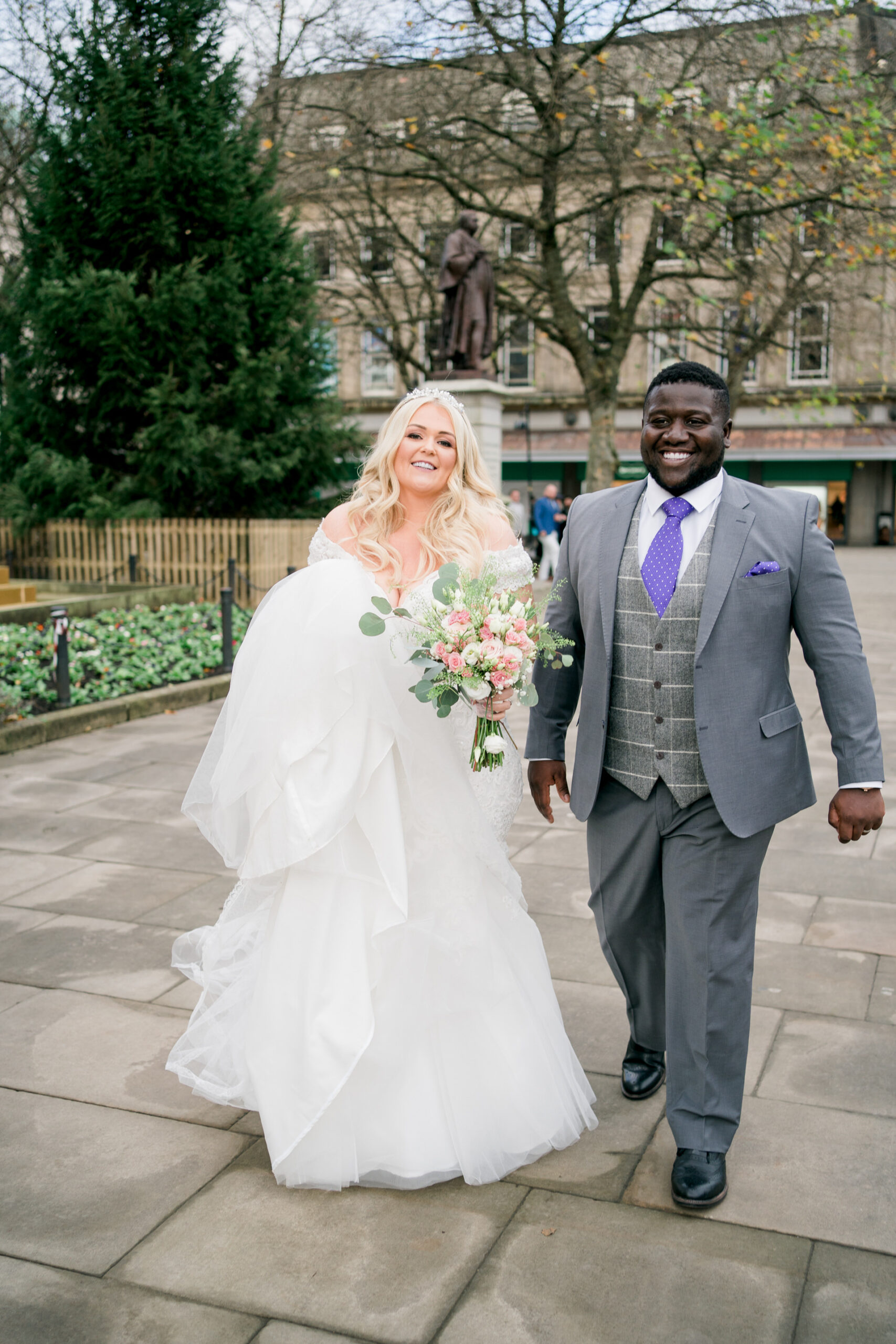 Leyton and Katie did things a little differently for their wedding! Their ceremony was at the town hall in Bolton, and I met them there last week to photograph it along with a very select few friends and close family. We took pictures on the steps of the pretty impressive building and in the square near the remembrance day memorials. They then spent a couple of days midweek in London, just the two of them, like a romantic little mini-moon 🙂 Then, On Saturday, they headed into Manchester and got glammed up and party-ready for their big reception at The Castlefield Rooms.