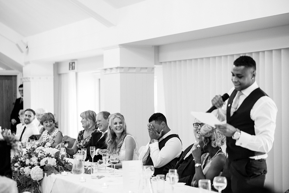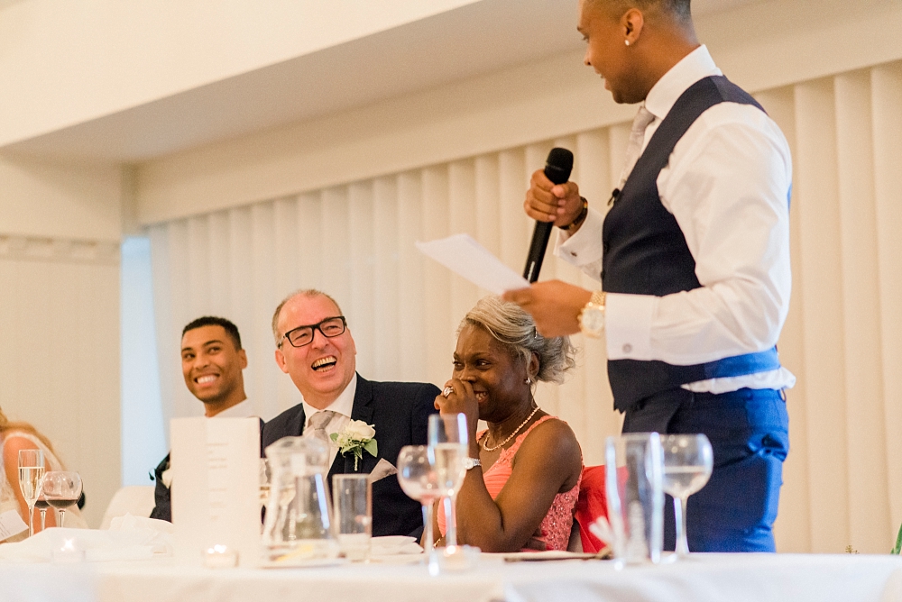 We managed to get a few photos outside in between showers whilst their guests were relaxing and enjoying the sound of the steel band. Then it was off upstairs to see the beautifully decorated wedding breakfast room and to enjoy some very funny speeches.